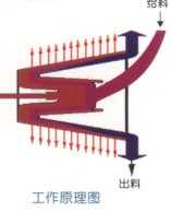 物料經掛有搪瓷的給料管及篩座進入篩藍的底部,篩藍內的物料受離心力作用緊貼篩面,在振動力作用下,料層均勻地向篩藍大端移動,脫水后的物料從篩藍四周甩出,落入機殼下部的排料口。向下排出。物料中的水分,在離心力作用下透過料層和篩縫,甩向機殼四周,沿殼體壁流向排水口排出。