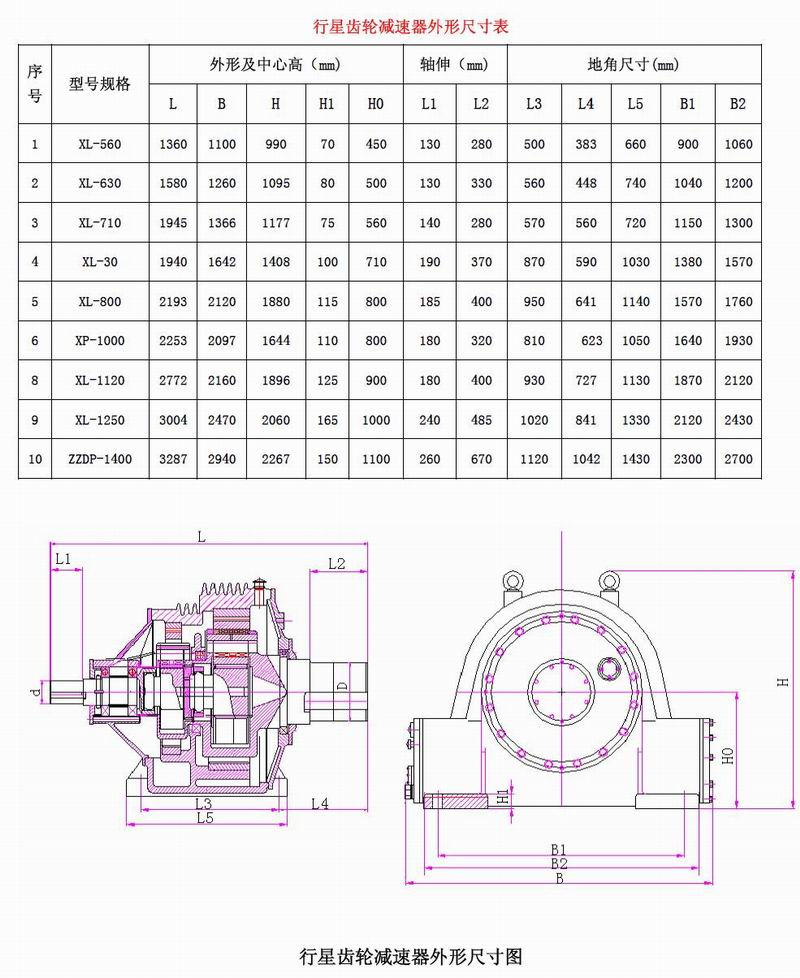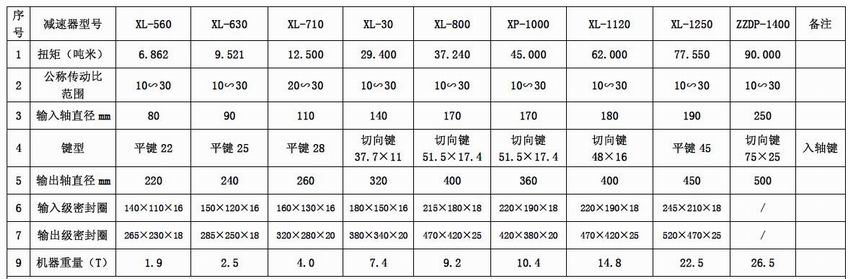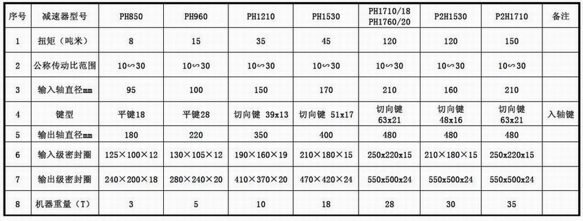 行星齒輪減速器技術參數表